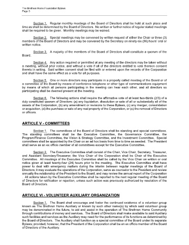 the Board of Directors.  The Auxiliary shall function as a special committee of the Board under its separate