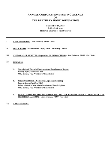 BRETHREN (ACTION) – Karl Lehman, TBHF Vice Chair
