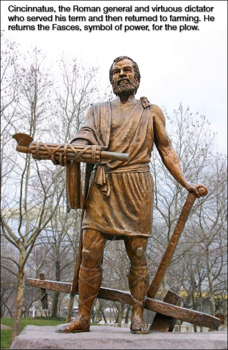 Annual Conference has been held in the State of Ohio seventeen times and twice before in Cincinnati: 1987 with Moderator Guy E. Wampler, and 1972 with Moderator Dale W. Brown. In 1790, the city (more of a settlement) was named after Lucius Quinctius Cincinnatus, the retired Roman consul who was entreated from his farm to save the Republic by Senators who promised him unchecked authority. He saved the city of Rome from plunder by the Sabines from one direction and the Aequi from another. He humiliated both foes with incredible wisdom and iron-fisted resolve. Rome welcomed their hero with a gigantic celebration, but after enjoying the unquestioned power of a dictator for only sixteen days, he relinquished that power and returned to his farm and family. Cincinnatus is regarded as the virtuous politician who truly serves the people by completing his term and then leaving office to go back home, instead of the modern career politician who feathers his/her nest with exemptions, privileges, favors, pensions, and most of all - tenure. What an inspiration for the delegates this year as they tackle a mountain of business.