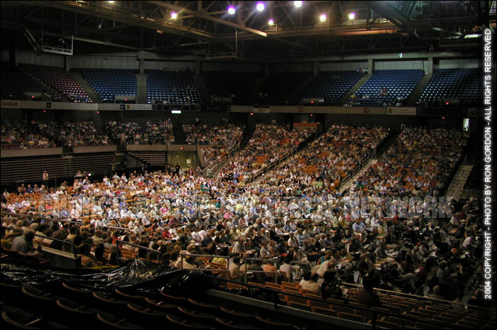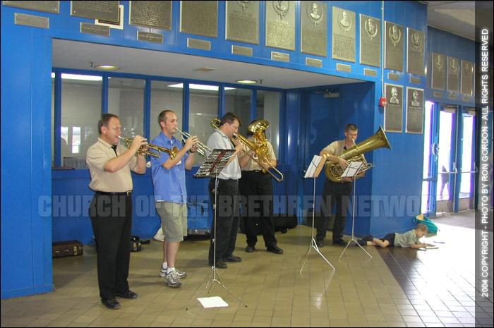 The 218th Annual Conference (July 3-7, 2004) of the Church of the Brethren was held in the Charleston Civic Center 200 Civic Center Drive, Charleston, West Virginia 25301. The CCC is a megaplex of four venues: the the Municipal Auditorium, the Little Theater, Convention Center, and the Coliseum with a seating capacity for up to 13,500. Additionally, there are numerous conference rooms, parlor rooms, a large Banquet Hall, and a Convention Hall that offers over 50,000 square feet of exhibition space, plus on site paid parking that can accommodate up to 2,000 vehicles, with adjacent paid parking for more than 4,000 vehicles within a three-block area. The original 1959 facility completed at a cost of $3 million offered 6,000 seats. In February, 1966 Wilt Chamberlain broke the NBAs all time scoring record at the Civic Center. National Hotels were nearby with Spacious Room with nice Dining Facilities that offered comfortable features as well as great food. A huge Shopping Mall enabled Brethren to pickup traveling necessities and souvenirs. Near the middle was a Water Fall that became a favorite meeting spot for Brethren groups.