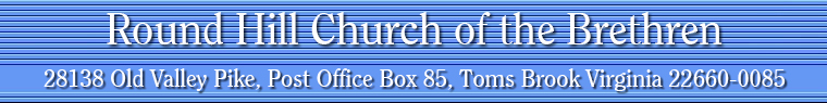 Our Church history dates back to 1857. A log building located along the Shenandoah river, was known as the Oak Grove Baptist, and was the first meeting house in Shenandoah County of the Church of the Brethren. In 1955, the congregation decided to go from a one room church to a new church with class room and a fellowship hall, Constructon began in1959, was dedicated in April 1960. Round Hill in the new church has enjoyed nine pastors. Our present pastor is Beverly Funkhouser. A new North-wing was added in 2002, giving us eight class rooms, plus a place for the Children Worship service. There is a monthly Fellowship Dinner which follows the Sunday School Hour the second Sunday. |