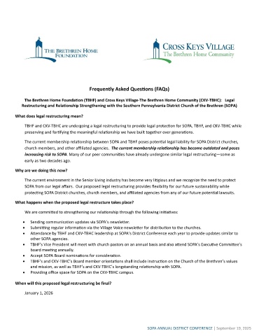 The Brethren Home Foundation (TBHF) and Cross Keys Village-The Brethren Home Community (CKV-TBHC): Legal