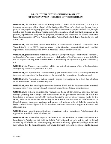 WHEREAS, the Southern District of Pennsylvania – Church of the Brethren (“SOPA”) is a