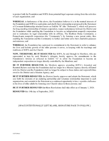 and to restructure its legal relationship with its affiliate, The Brethren Home Community, a