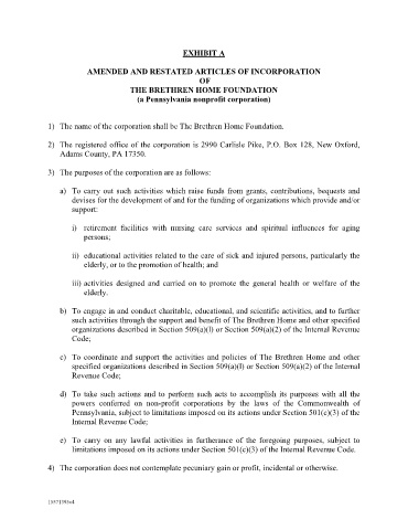 1) The name of the corporation shall be The Brethren Home Foundation.