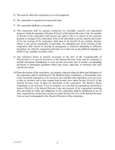 the corporation shall be distributed to The Brethren Home Community, a Pennsylvania non-