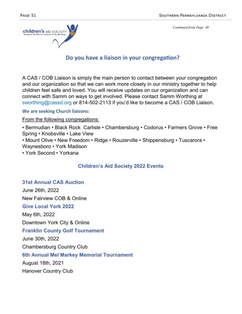 sworthing@cassd.org or 814-502-2113 if you’d like to become a CAS / COB Liaison.