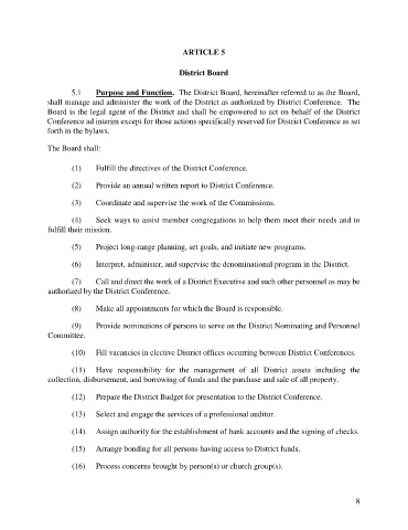 5.1 Purpose and Function. The District Board, hereinafter referred to as the Board,